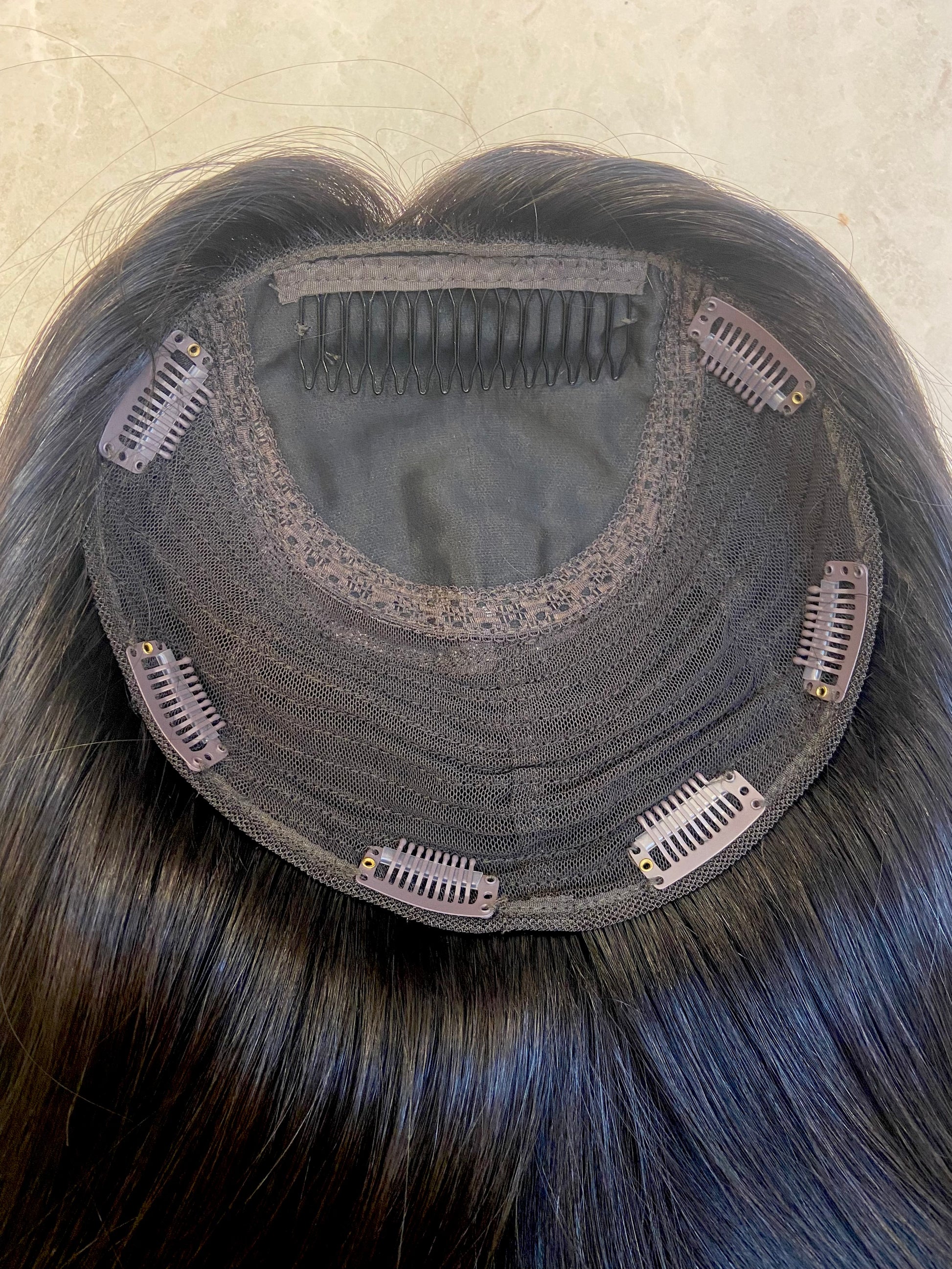 Cap construction: 8x8 Topper with a 4x4 silk top. You can change the part freely! Comb at front and clips all around the base.